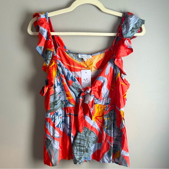 Tropical ruffled cut-out top that ties in front. NWT. No flaws. I will accept or negotiate ALL offers 🥰