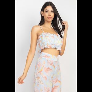 Tropical Ruffled Cut-Out Top & Pants Set