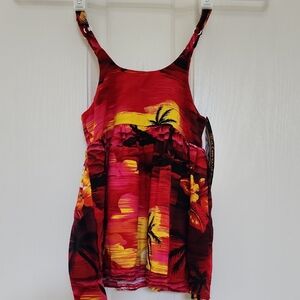 Brighten up your child's day with this tropical sunset dress. Featuring a stunning blend of red, pink, and yellow, it's perfect for casual outings.