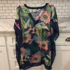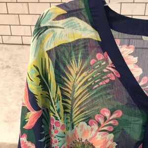 Tropical Swim Coverup Womens Size Small Sheer Blue Pink Floral