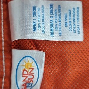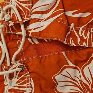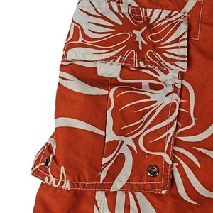 Tropical Swim Shorts w/ Velcro Pockets, Orange, Mens L (36/38)