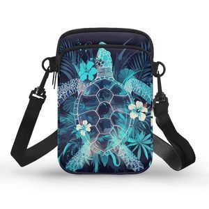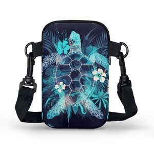 Tropical Turtle Flowers Travel Crossbody Bag Deep Blue Cell Phone Shoulder :D
