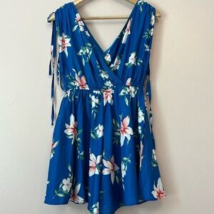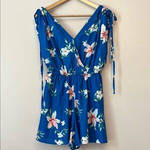Tropical Women’s Floral Romper Blue Pink Sz Small Summer Vacation Beach Party