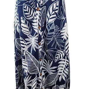 Tropical Womens Size XL Linen Rayon Leaf Print Button Up Sundress Casual Summer