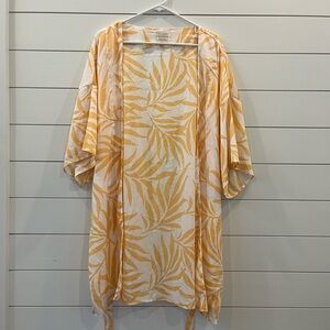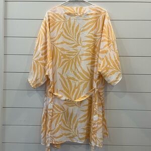 Tropical Yellow Leaf Print Kimono