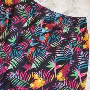 This is a nice pair of men's boardshorts with a colorful tropical print. These shorts have pockets, drawcord, velcro back pocket, and elastic waist. Not lined. Brand new with tags.