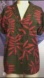 Tropical leaves pink on olive green button up short sleeve blouse top size small