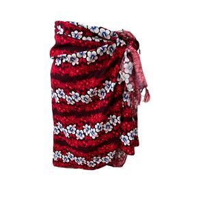 Tropical red and blue hibiscus print Sarong cover up. Perfect for your next beach get away! One size, fringed bottom, no materials tag but feels like cotton