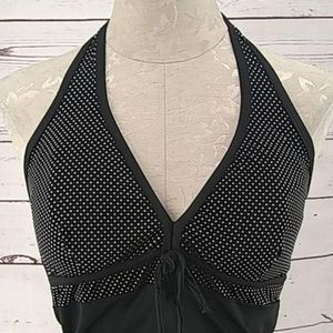 Tropical Escape Women's Black Polka Dot Halter Tankini Swimsuit Top Size 10