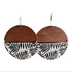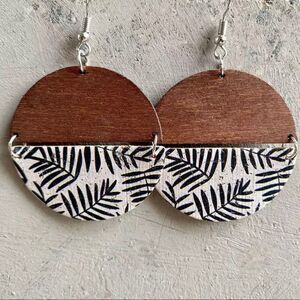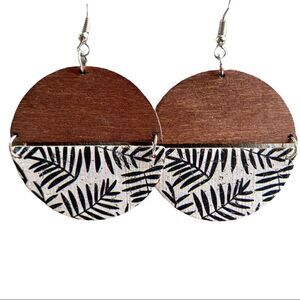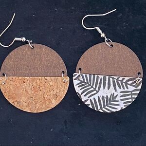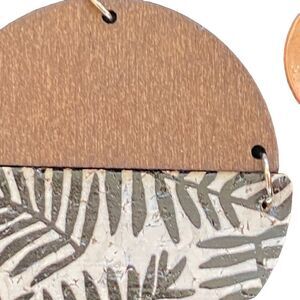 Tropical Palm Design Cork & Wood Circular Drop Earrings NWT