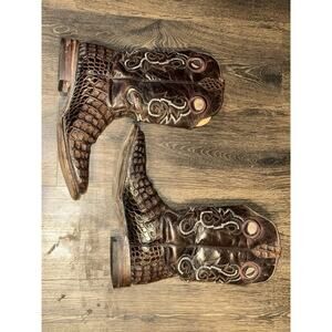 Trotamundo Crocodile Dark Brown Leather Square Toe Cowboy Western Work Boots SZ9