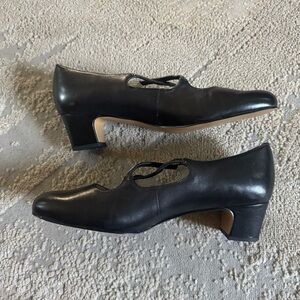 Trotters Black Leather Jaimie Cross black heels shoes Maryjane low heels 9.5 M