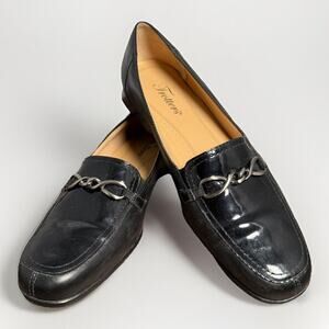 Trotters Black Leather Loafers Women’s Size 10M Chain Accent Made in Brazil