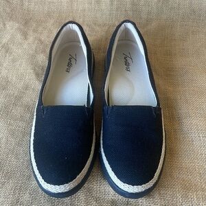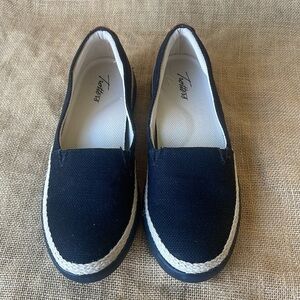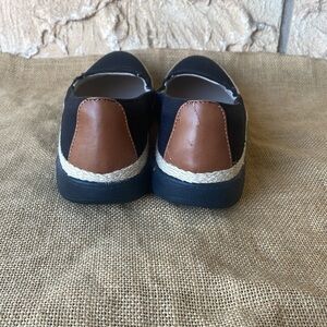 Stylish black mules with tan accents. Comfortable and versatile. Perfect for casual wear. ** Please note, these shoes fit more like a size 8 **