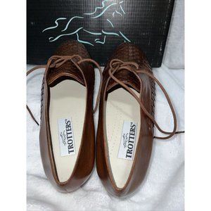 Elegant brown leather oxfords. Woven design. Lace-up closure. Perfect for any occasion.