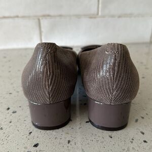Trotters Delse Taupe Lizard Print Suede Leather Pumps Low Block Heel Women’s 8N