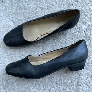 Trotters Doris Black Leather Block Heel Pumps Size 11M