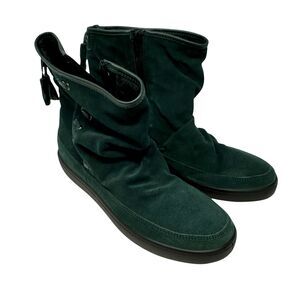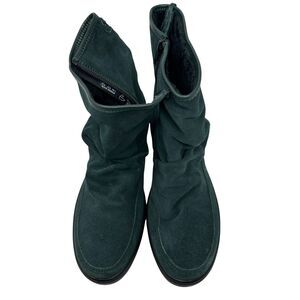 Trotters Green Suede Faux Fur Pixie Slouch Side Zip Bootie Mocassins Size 10