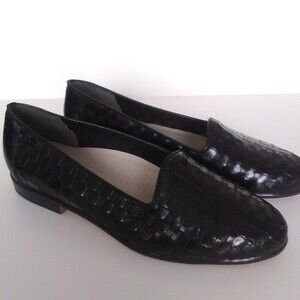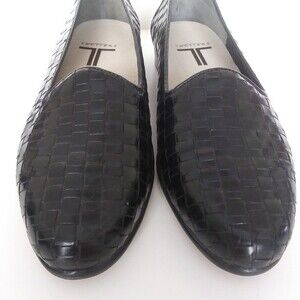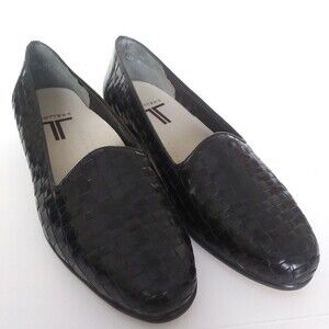 Trotters Liz Basketweave Loafers Size 6 Black Leather Uppers