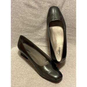 Trotters Size 9 Metallic Gray Patent Leather Low Heel Women’s Shoes EUC