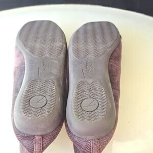 Trotters style sizzle micro fiber Elegant brown women's ballet flats featuring stylish gold accents. Perfect for any occasion. low tops, slip ons for easy of and on. sharp looking gold accent onto box giving them that extra flare .