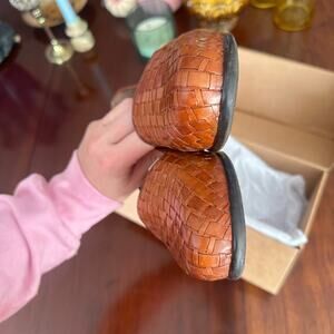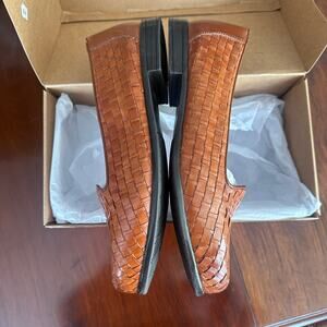 Trotters Sz 8WW Liz Slip-On Loafer Chestnut Brown Woven Leather Quiet Luxury