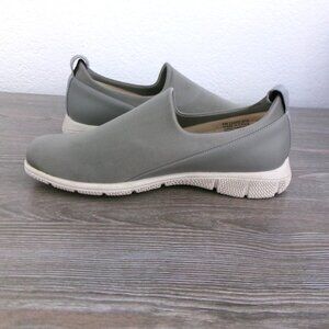 Trotters ULTIMA Slip On Sneakers Sage Grey Arch Support 8 Leather Stretch Fabric