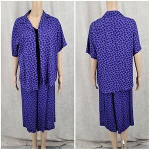 Trotters Vintage Indigo Geometric Matching Set Gaucho Pants Button Down Shirt