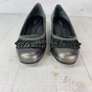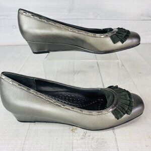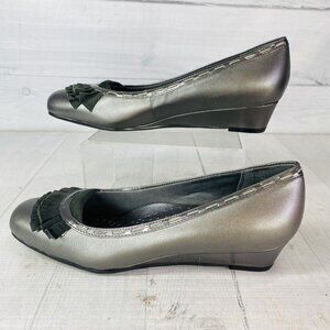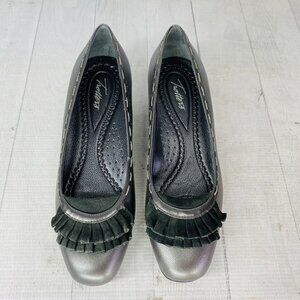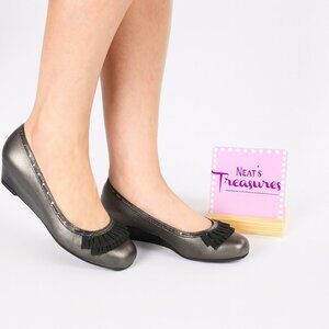 Trotters Women DREAMA Gary Leather Slip On Fringe Low Wedge Heel Shoes Sz 7.5 M