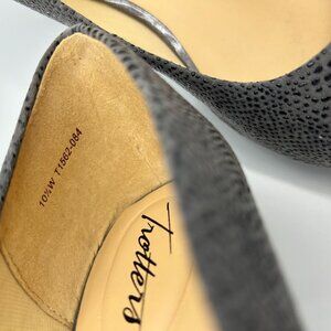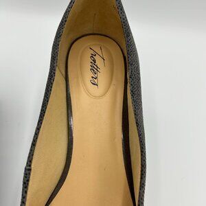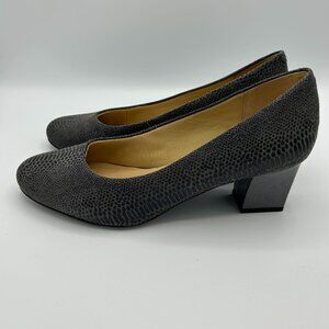 Trotters Women's 10.5W Gray Snakeskin Pattern Leather Chunky Heel Pumps