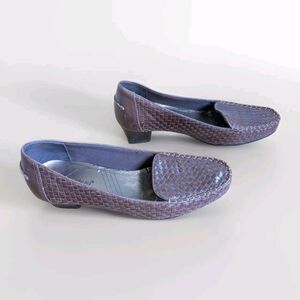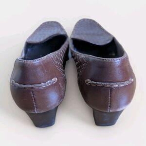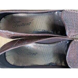 Trotters Women’s 7.5M Brown Leather Woven Loafers Slip-On Block Heel Shoes