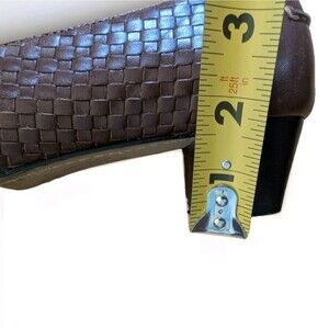 Trotters Womens Woven Leather Loafers Brown Size 7.5M Square Toe Block Heel Shoes