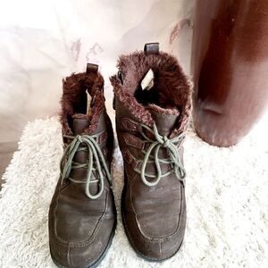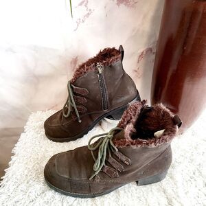 Excellent condition Trotters warm winter fall boots with faux fur lining lace up style with side zip for easy on off. Rubber lug sole 1.5" heel