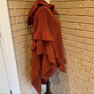 Troubadour Anthropologie Yak Wool Rust Ruffle Cape Poncho Sweater Soft Hooded OS. Truly stunning heirloom piece. Warm and soft. Perfect layering piece. See measurements in pictures.