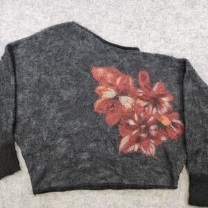 Troubadour Sweater Womens Medium Black Floral Mohair Wool Blend Pullover Cozy