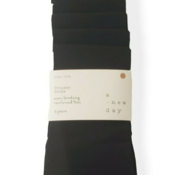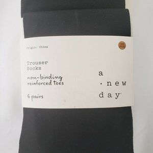 Trouser Socks Black 6-Pair A New Day Socks Reinforced Toe One Size Fits Most