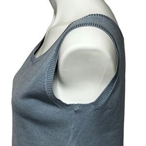 Trousers ETC NWT icy blue silk blend knit sleeveless shell sweater size L. 75% silk 25% nylon. Length 21” Chest 17”.