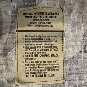 Trousers, Hot Weather, Woodland Camouflage Pattern, Combat. Size Large Long
