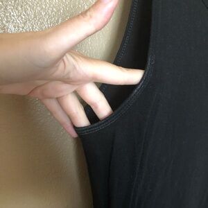 Good worn condition. Can see discoloration in the underarms as pictured. Side tie and asymmetrical cut. Small repair on the front of the top that is difficult to see on ( and off ). I purchased this from Nordstrom and didn’t see the repair until after multiple wears!