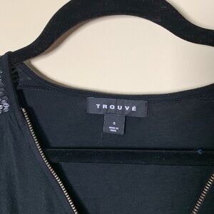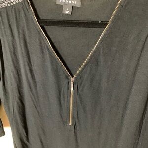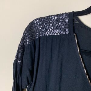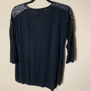 Trouvé black three quarter length sleeved blouse with a zipper v-neck and sequins shoulders size small good used condition