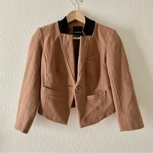 Trouve Women's Wool Blend Jacket One Button Front Blazer Jacket Colorblock Front Pockets