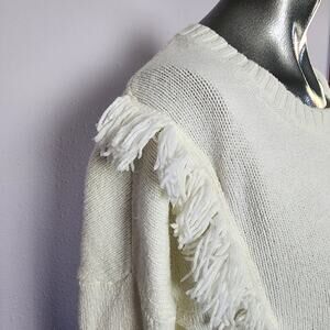 Trouvé Fringe Off-White Wool Blend Crew Neck Knit Sweater | Women's Large