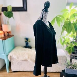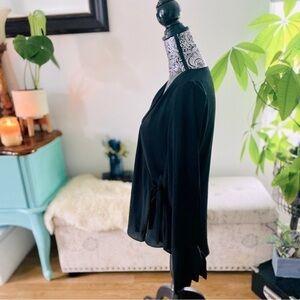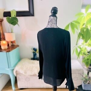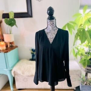 Trouvé Nordstrom Chiffon Wrap Style Long Sleeves Tie Cuffs Black Top Blouse, M