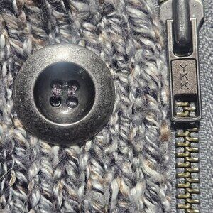 This cropped sweater features a wool blend knit with button-front and zipper details. Ideal for layering, it offers a stylish and cozy option for cooler seasons.