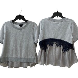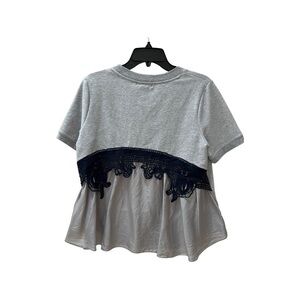 Trouvé gray shortsleeved sweatshirt with flowy hem and navy appliqué size M