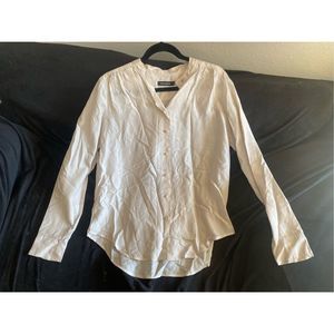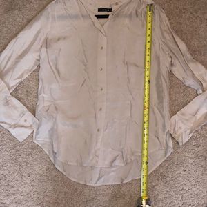 Trouve Beige Button-Down Shirt Cupra/Rayon Blouse, Women's Size Medium