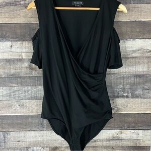 Trouve Black Cold Shoulder V-Neck Ruched Body Suit M Minimalist Balletcore