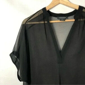 Trouve Black V-Neck Chiffon High Low Short Sleeve Blouse XS