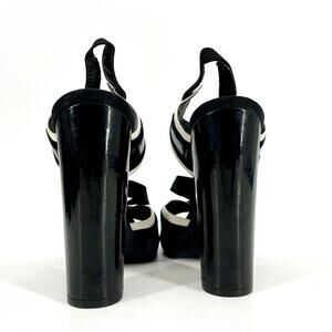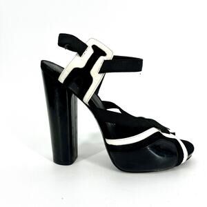 Trouve Black White Patent Leather Peep Toe Chunky Heel Pumps Sandals (10M)