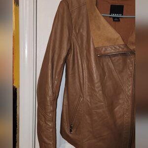Trouve Brown Genuine Leather Asymmetrical Jacket
